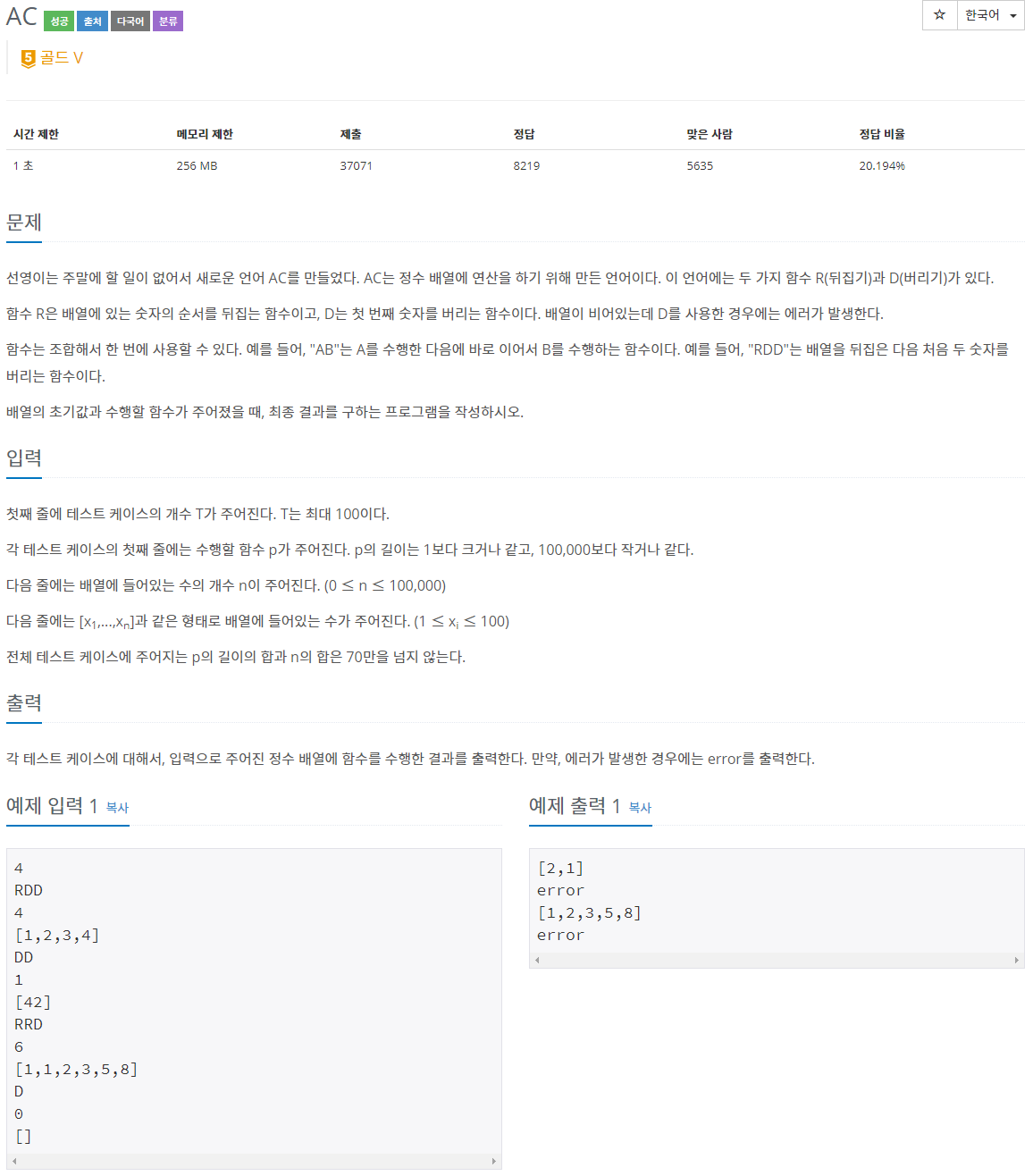 [백준]5430: AC - JAVA문제풀이/백준 2021. 4. 18. 18:44
