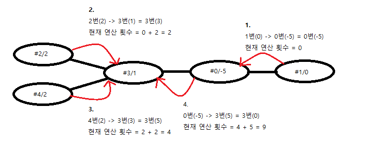 - 한 방향으로 탐색을 진행하면서 가중치 연산을 해야 한다. (목적 노드를 하나 정해두고 나머지 리프 노드에서부터 목적 노드까지 가중치를 계산하며 연산 횟수를 누적시켜 한번의 탐색으로 원하는 결과를 얻을 수 있다)
