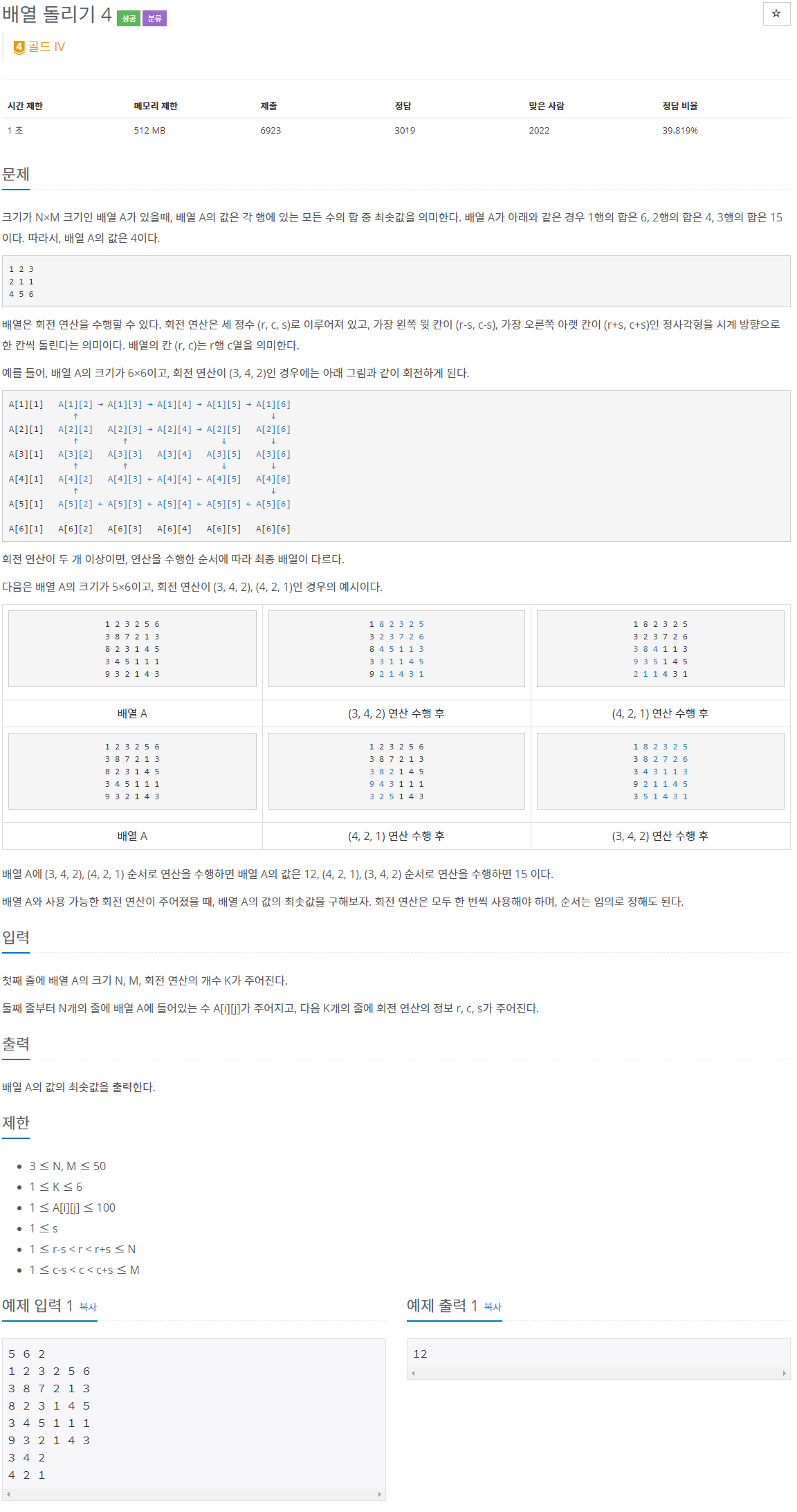 17406번: 배열 돌리기 4